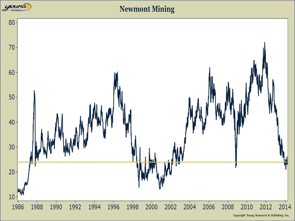 Anytime you buy something as out of favor as Newmont, you should be prepared to hold, not for weeks or months, but for years. Patience is the mandate when you invest in out of favor names. You trade short-term profits for the prospect of substantial long-term gain.