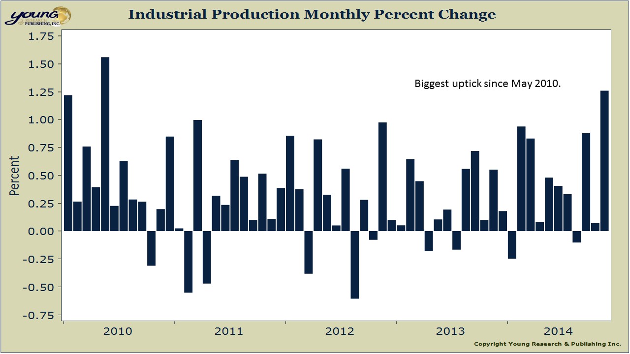 Industrial production recorded the largest monthly uptick since May 2010 in November. The acceleration in growth surprised the 81 analysts surveyed by Bloomberg, who had predicted an increase of only 0.7%, and instead witnessedย growth of 1.3% recorded forย the month.ย When combined with recent strong growth in employment, upticks in industrial production and otherย economic measuresย make it harder to understand the Fed’s continued defense of its low-rates-forever policy.