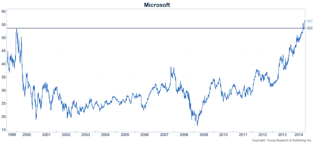 Both of those things happened. Microsoft remains the dominant provider of operating systems, and from year-end 1999 through year-end 2013 earnings compounded at almost 10% per year.